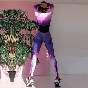 Women's Colorful Printed Sports Jumpsuit - Long Sleeve Fitness Yoga Activewear